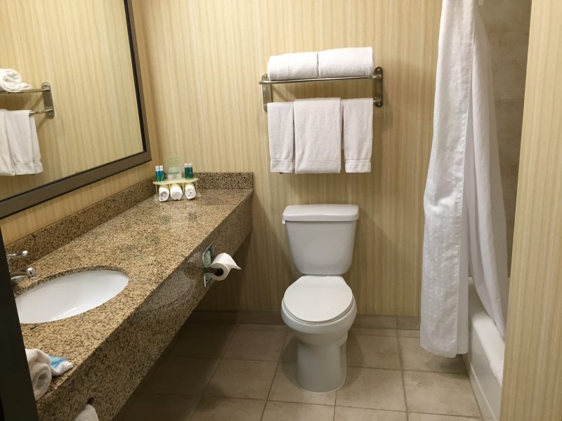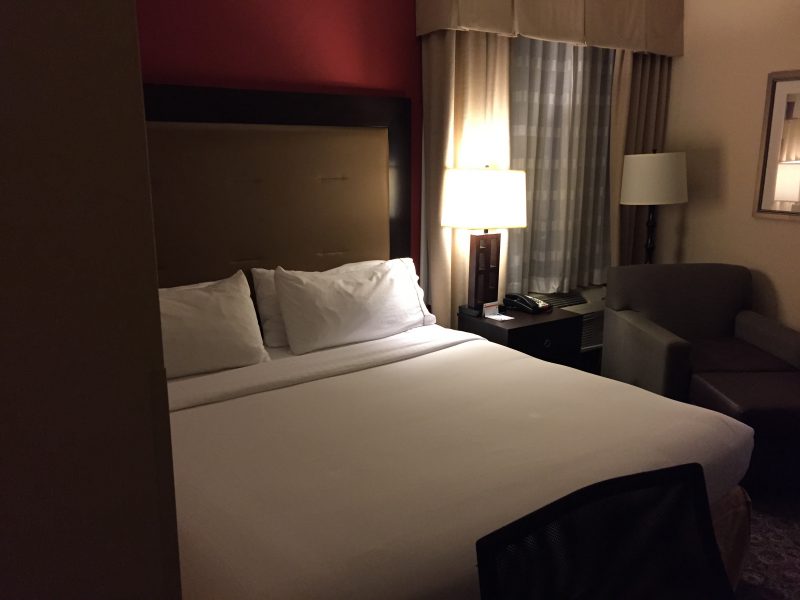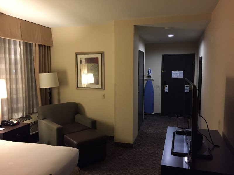 朝飯コンプ、空港送迎はドライバーにチップが必要(私一人のために車を出してくれたので2USD渡しましたが・・・)と、アメリカのHolliday Inn Expressとしては普通じゃないかと思います。