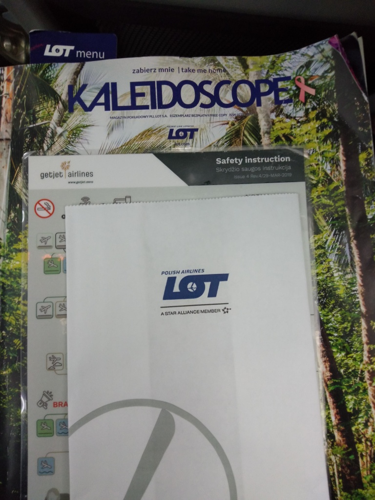 運航はgetjet airlinesが行いますが、サービスはLO基準になります。LOのサービスレベルを保つためにLOの乗務員が1名搭乗しています。そしてゴミ袋、機内誌はLOのものが搭載されています。