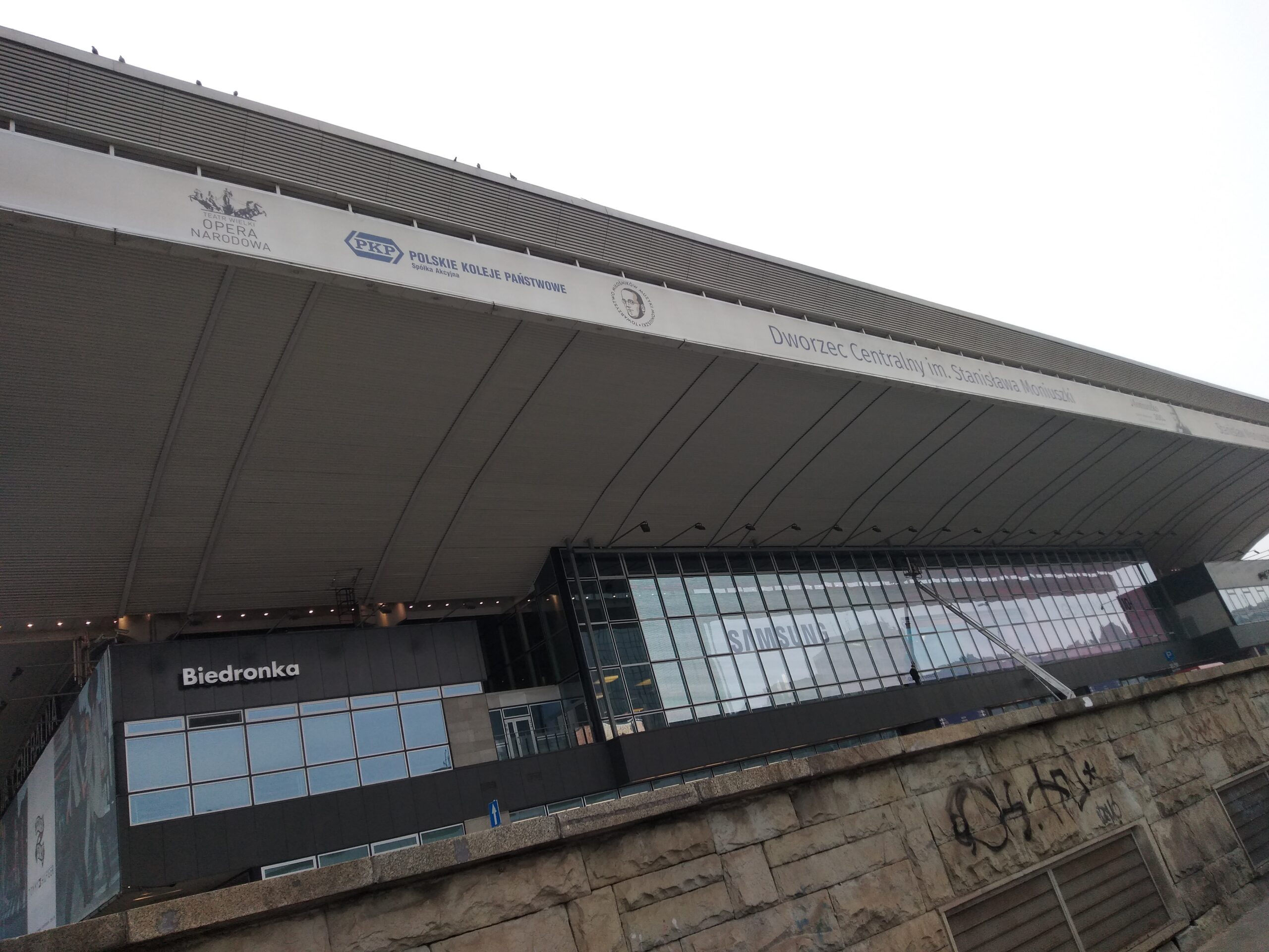 ワルシャワ中央駅(正式名称は「Dworzec Centralny im. Stanisława Moniuszki」、スタニスワフ・モニューシュコ記念中央駅)に到着。ちなみに空港駅にいる案内係に「Warszawa Centralna」でも「Warszawa Centrral」「Central Station」といっても普通に通じます。