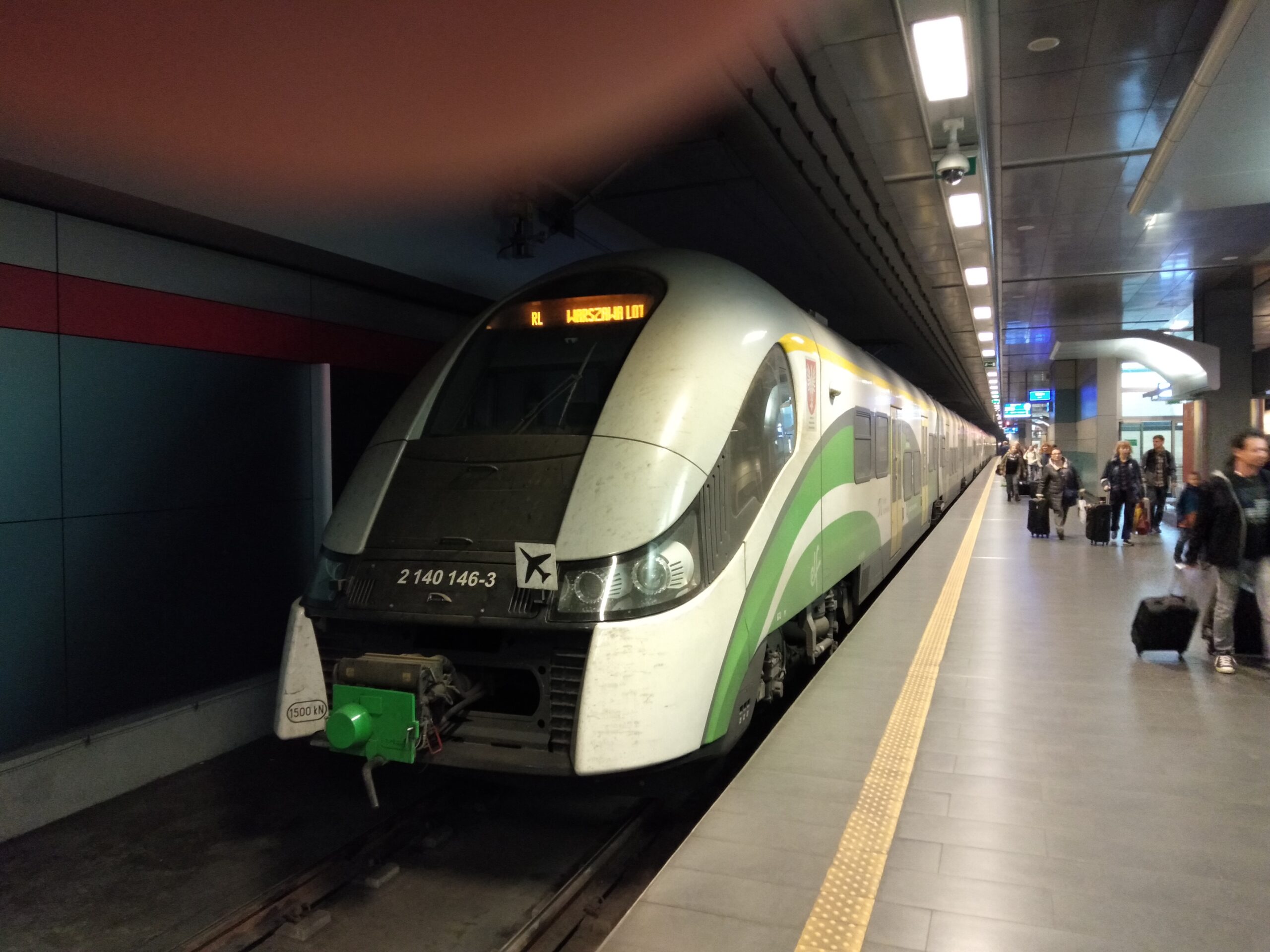 空港地下にある駅から鉄道に乗ってワルシャワ中央駅に向かいます。