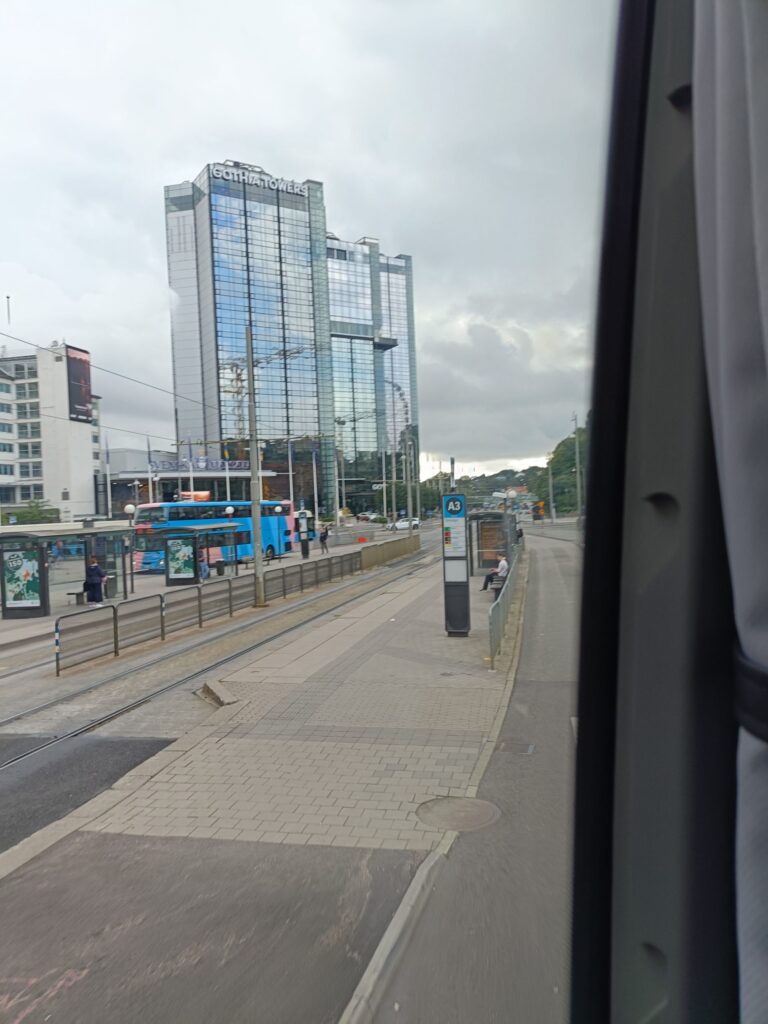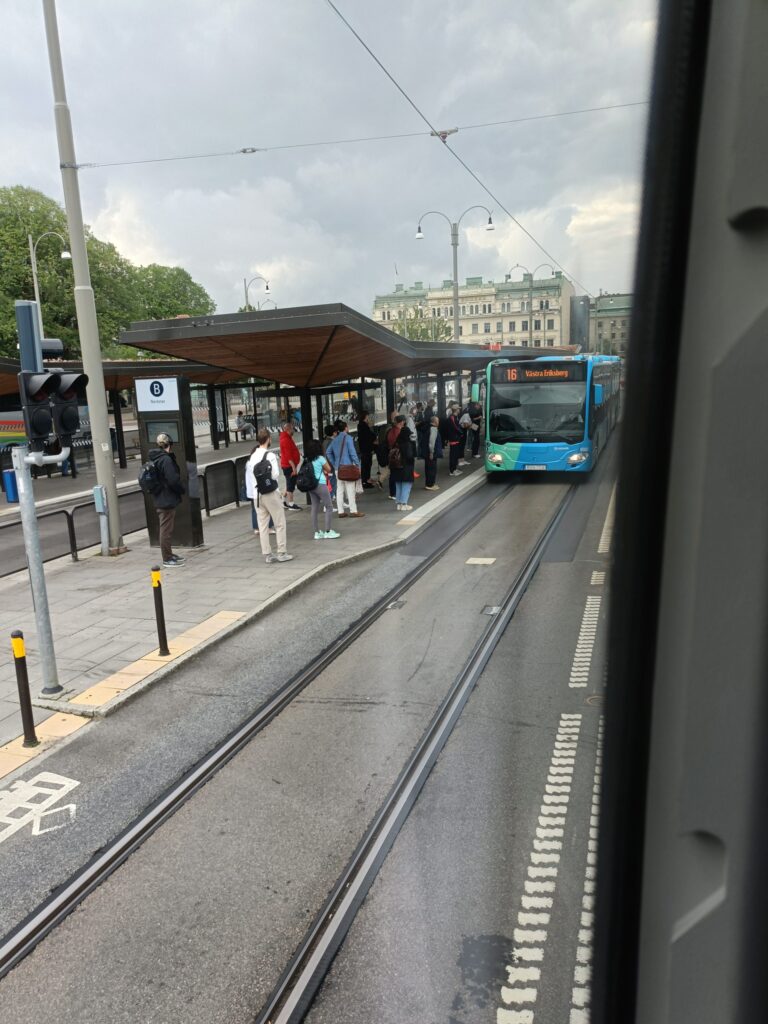 Nordstan バス停&電停を通過する。滞在期間中はHisingsbronを通過するトラム系統5,6,10が橋の南側で折返しで、北側はHjalmar Brantingsplatsenから先、系統5,6の終点であるLänsmansgårdenまでの間を臨時系統 X として運航していました。このあたりの話は別記事にします。