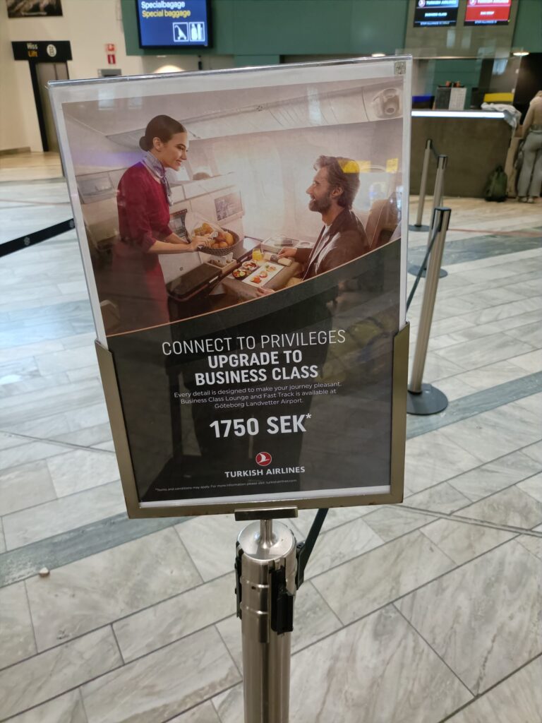 そして搭乗口は国際線の更に遠い場所にある23番。この搭乗口は手前にも搭乗券チェックができる中間ゲートがあって多分イェーテボリ-ニューヨーク便(A321-200LRを使った)就航時に使ったところだなぁと思いながら、このゲートもビジネスとエコで分かれていた。中流階級なのでビジネスクラスの列に並んで搭乗券を渡したら目の前でビリビリ破られて・・・