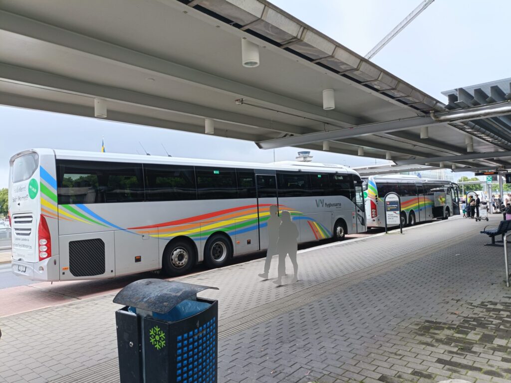 空港に到着。バスの大きさが異なります(拙者が乗ってきたのは前のバス)。リヤオーバーハング(後輪から後ろに延びる車体の部分)も異なります。この車長の違いでNils Ericson Terminalを左折で出ることができたのかもなぁと。