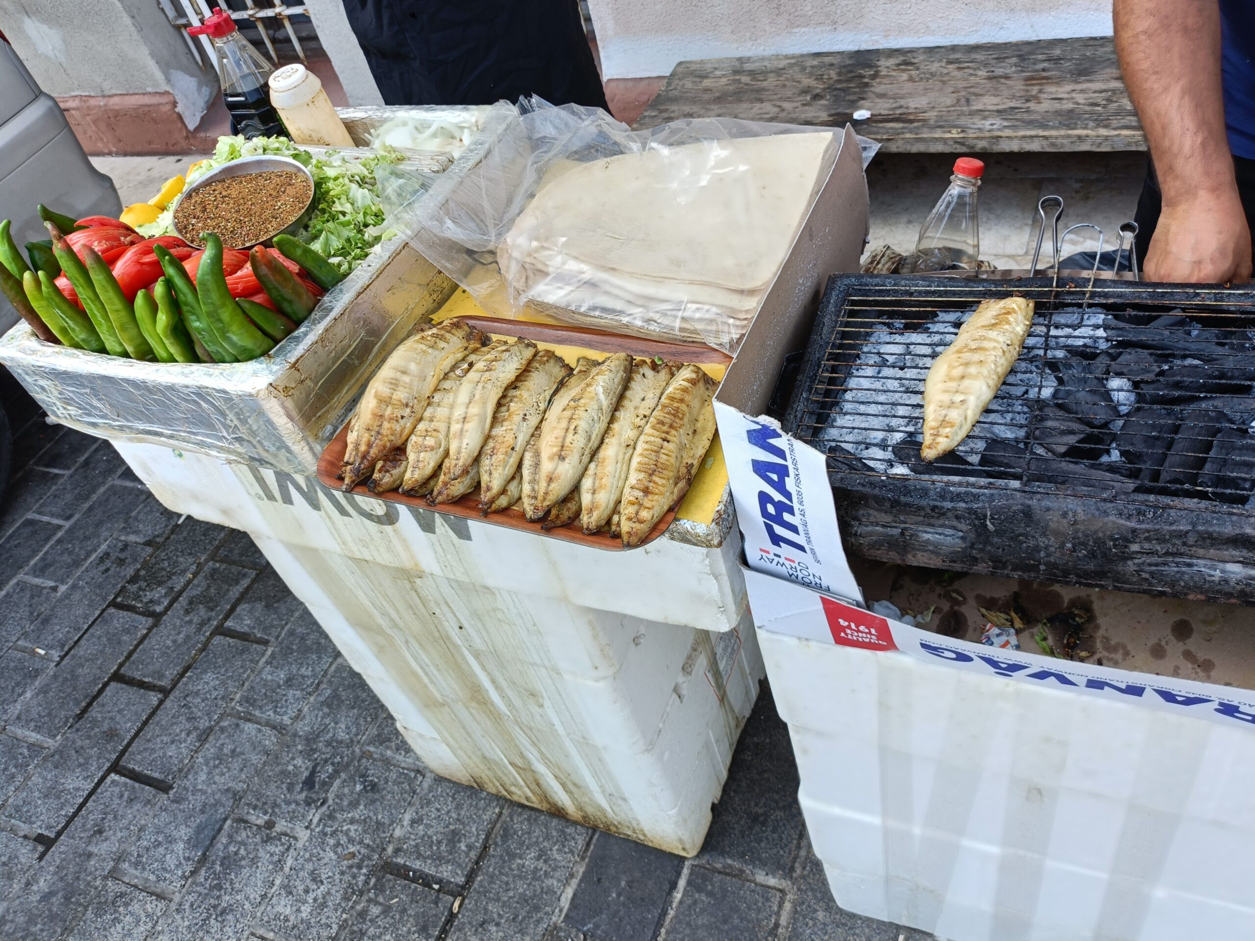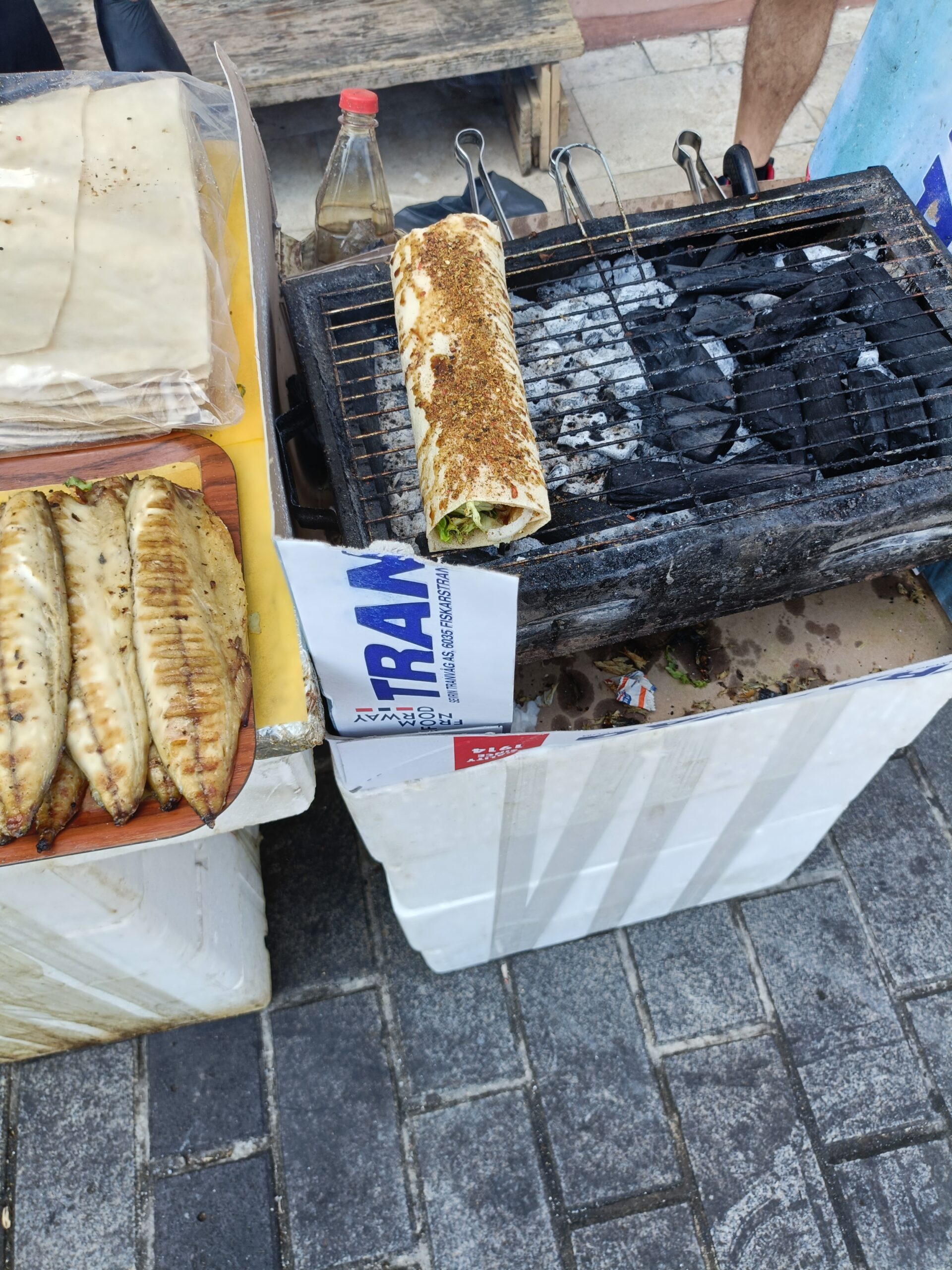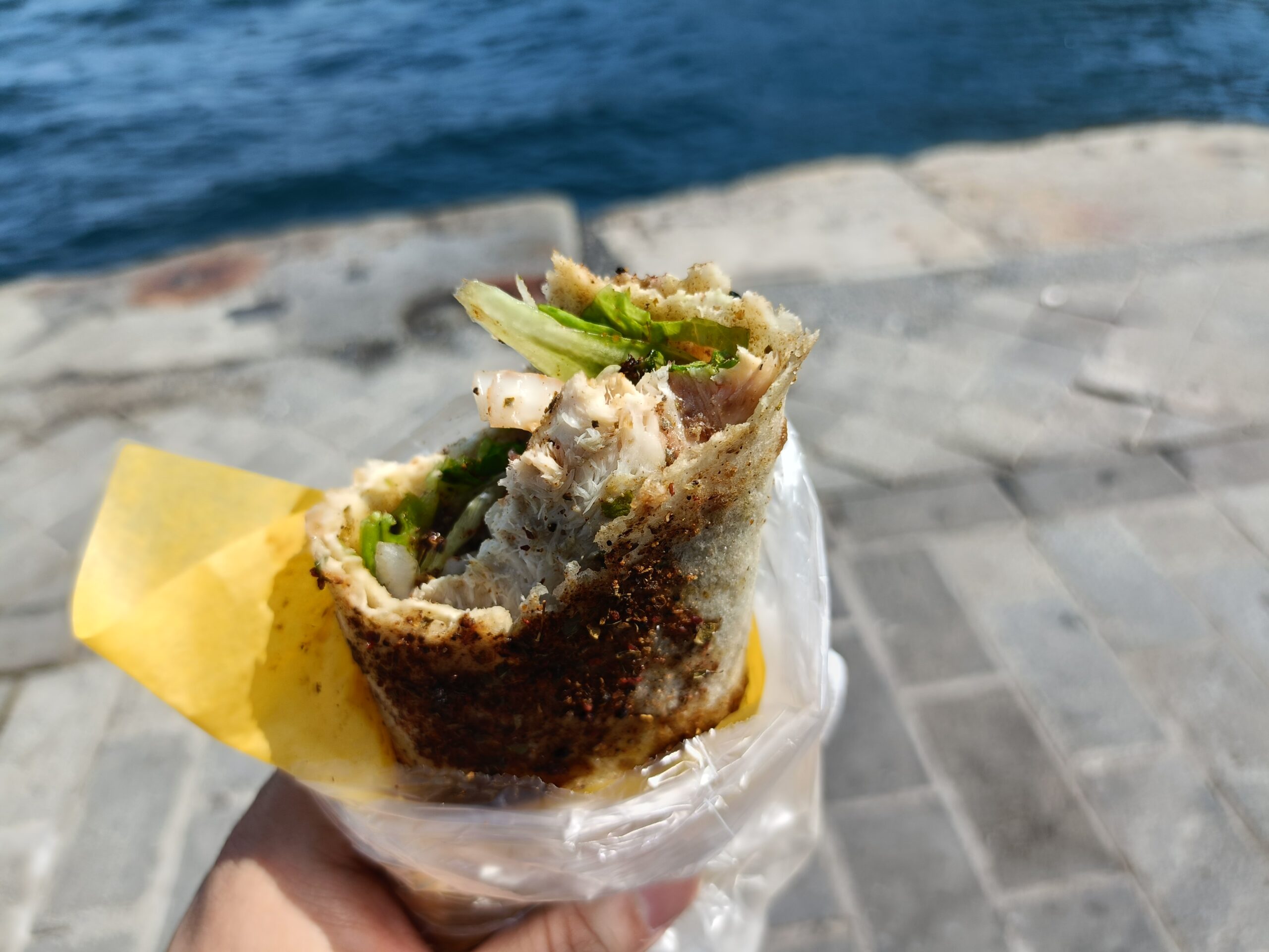 ガラダ橋近くにサバサンド食えるお店はたくさんありますが、「バケットに鯖挟んだやつはやめて、市場の露天で売っているトルティーヤで包んだものを食べなさい」というお達しがあり、トラム激混みなのでバスでガラダ橋まで移動しました。
