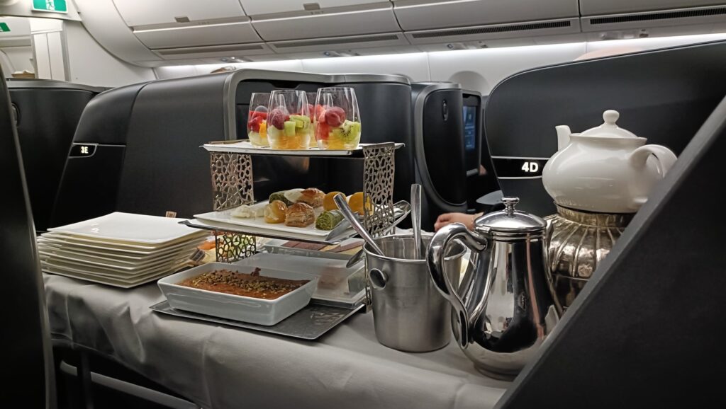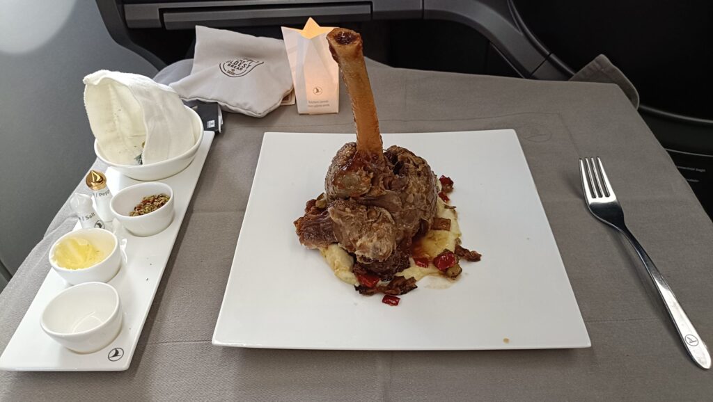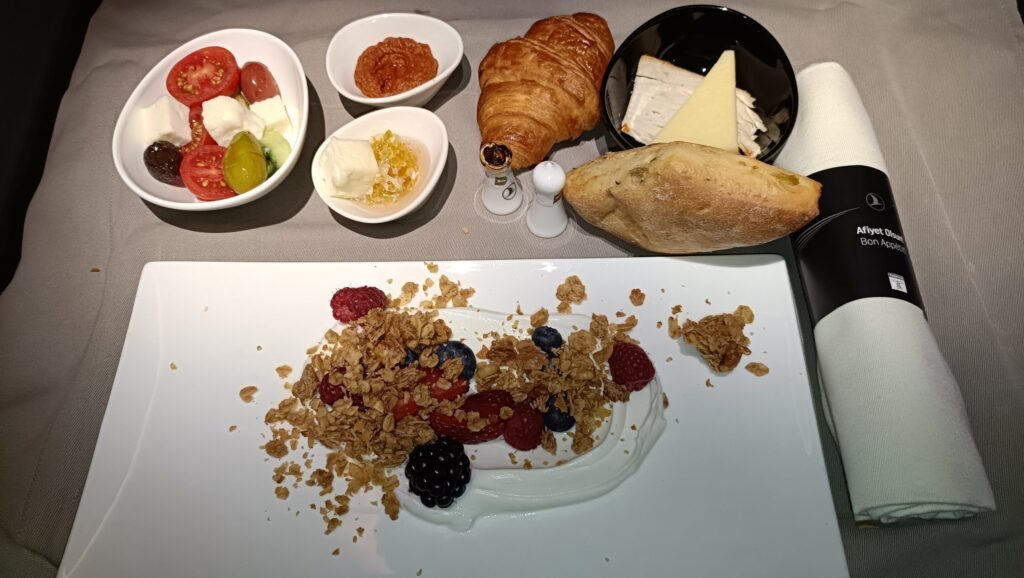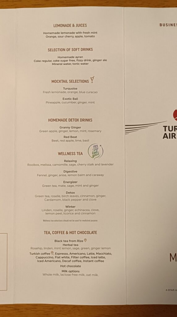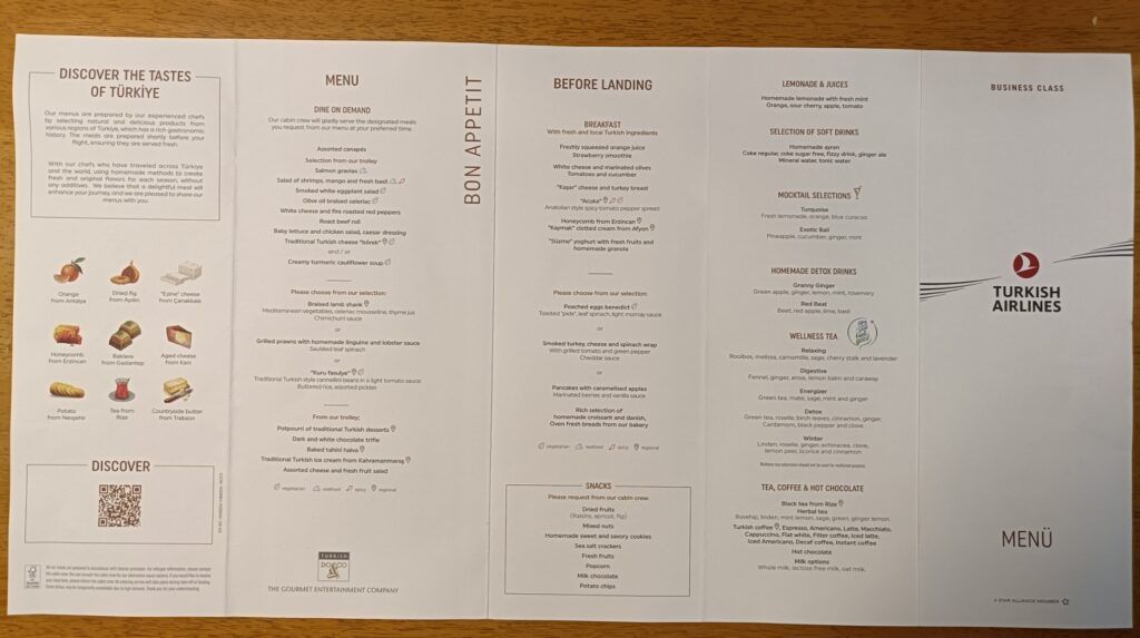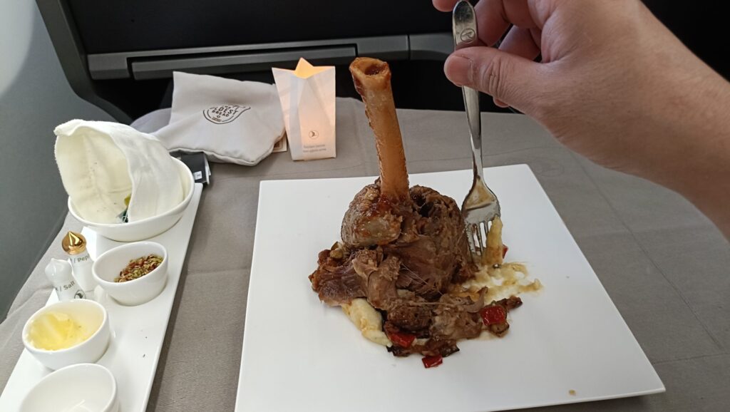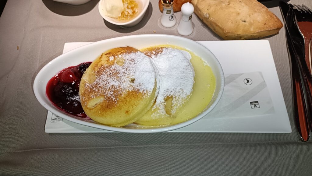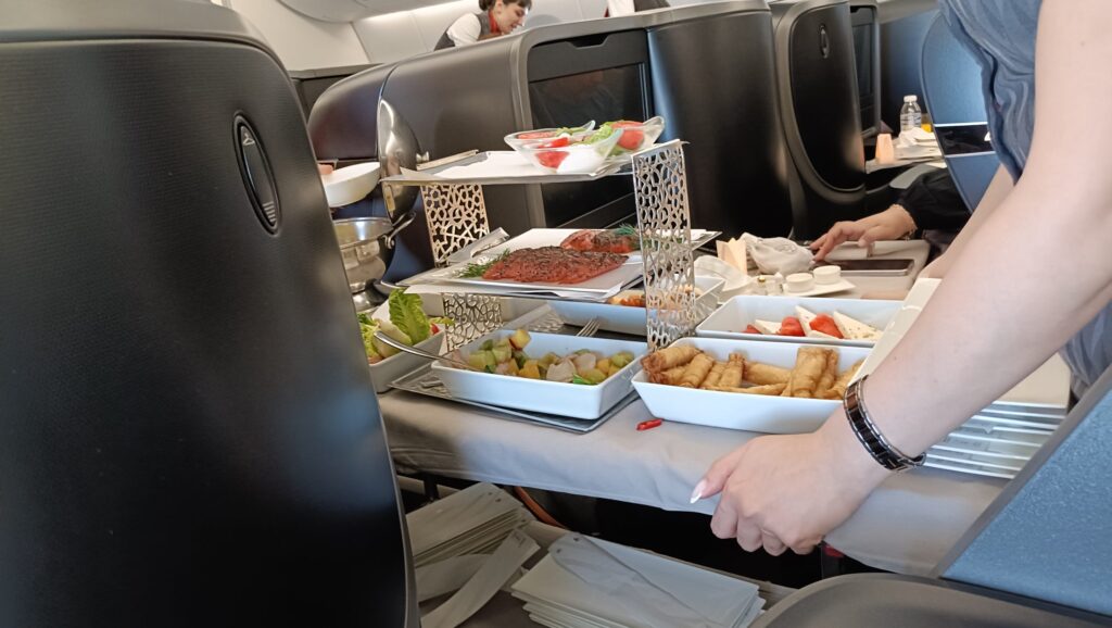 この便はフライングシェフが離陸後の食事のメインディッシュの伺いを立てに来ます(朝食のリクエストは取りません)。