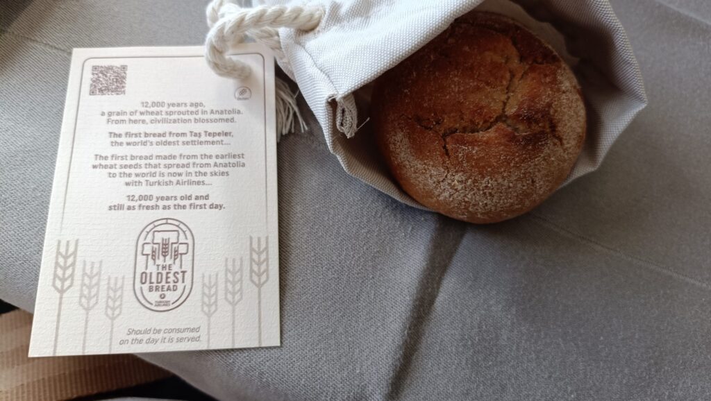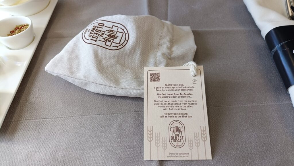 そして、左上のパンを入れる袋とは別に「12,000年前に初めてアナトリアで発芽した小麦で作られたパン」というものが配られます。このパンとは別に普通のパンも提供されます。パンとしては何か特別なものかと「腹に入れば同じ」な人に問われてもなぁ・・・