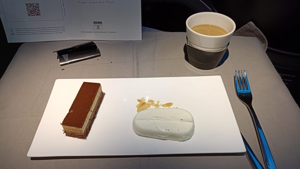 余力があると思っていたら、ラム肉がなかなかしんどかったようで、これだけ(Dark and white chocolate trifleとTraditional Turkish ice cream)しかもらっていなかったか・・・