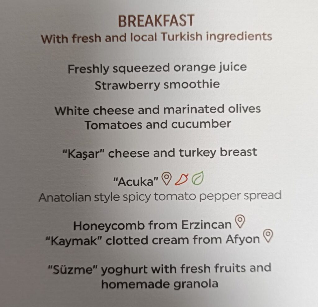 搭載されているものはメニューから抜粋します。アイコンでどんなものなのかがわかるのがよいです。なお、位置を示すアイコンはトルコ料理という意味。