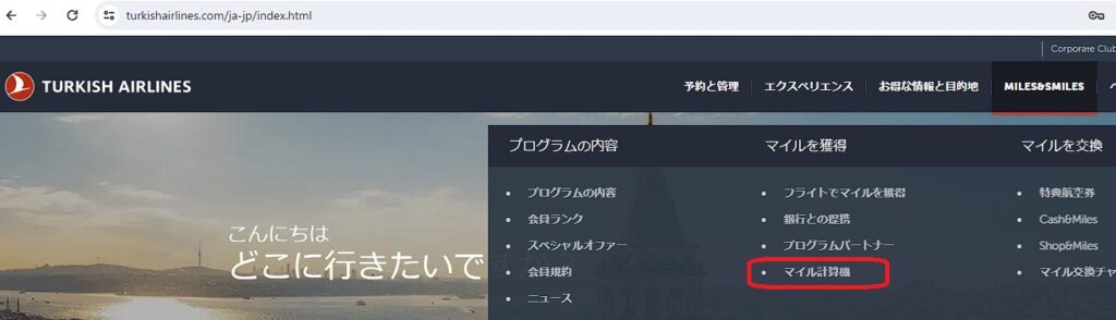TKのWebサイトには以下のように「マイル計算機」というものがありますので試してみましょう。